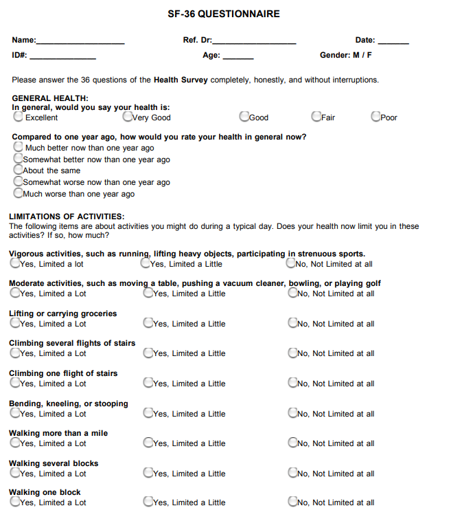 - The Oswestry Disability Index (ODI), Patient-Reported Outcomes Measurement Information System (PROMIS) or Roland Morris Disability Questionnaire (RMDQ) for low back pain