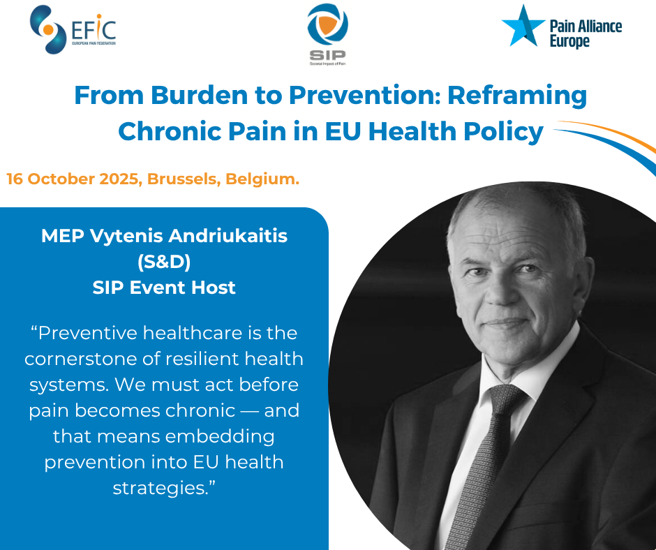 Patrice Forget; SIP Chair; EFIC Advocacy Committee Chair; European Pain Federation EFIC: “This year’s European Day on Pain Awareness marks a pivotal shift from managing pain to proactively preventing it. By convening researchers, clinicians, patient advocates, and policymakers, we are strengthening the foundation for evidence-based strategies that reduce the burden of pain, before it begins, or its consequences when having to live with. The continued support for this initiative can only encourage us to prioritise prevention, equity, and innovation in pain care.”